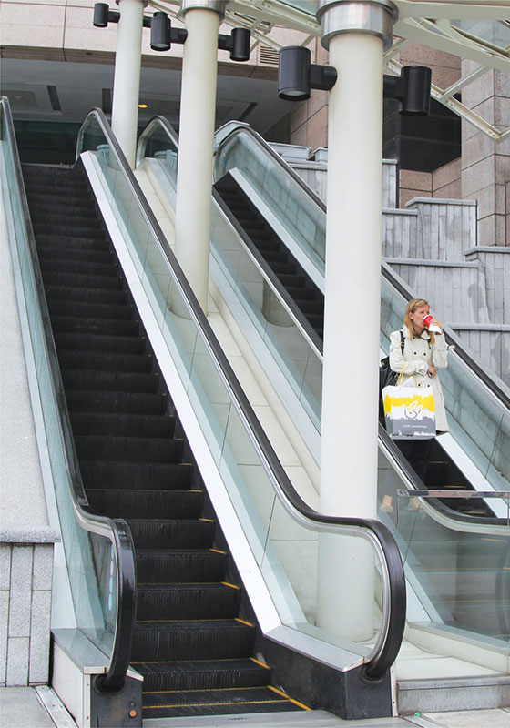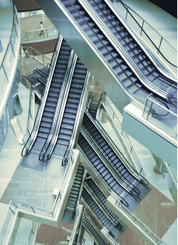 该扶梯广泛用于机场、火车站、高档酒店、中央商务区(CBD)、大型购物中心、公共设施等场所,为现代建筑增添一道流光溢彩的风景线。